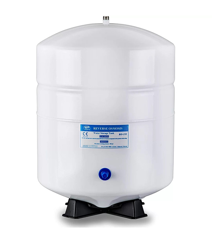 Tankpac (PAE) RO-132, NSF/ANSI-58 onaylı malzemeler ile üretilmiştir. Su depolama haznesi, TEK polipropilen astar, yüksek kaliteli klorobütil diyafram ve paslanmaz çelik 1/4 “MPT su bağlantısına sahiptir. Suyun tatsız, kokusuz ve kirletici olmamasını sağlamak için diyafram steril edilir.